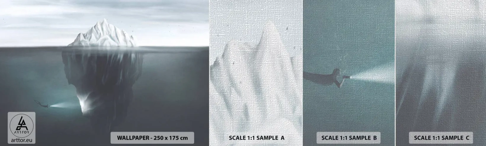Fotobehang Monster Premium Canvas - Onderwater mysterie - Ijsberg, Gletsjer, Duiker - 100x30 cm