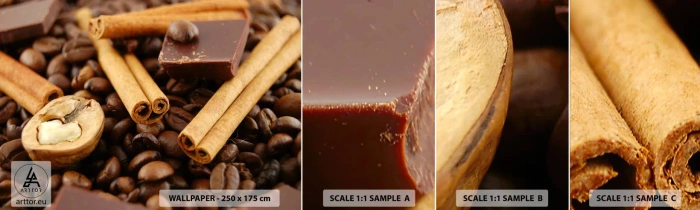 Fotobehang Monster Zelfklevend Deluxe Sticker - Concert van aroma's - Gastronomie, Chocolade, Koffiebonen - 100x30 cm