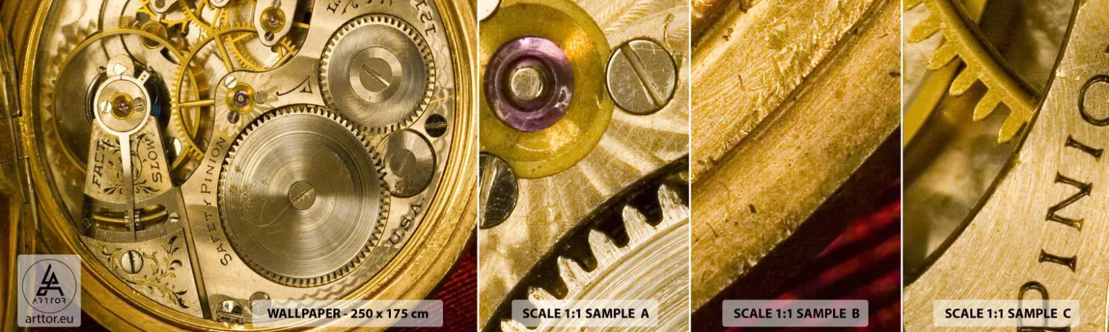 Fotobehang Monster Zelfklevend Deluxe Sticker - Ga met de tijd mee - Klok, Klokmechanisme, Vintage - 100x30 cm