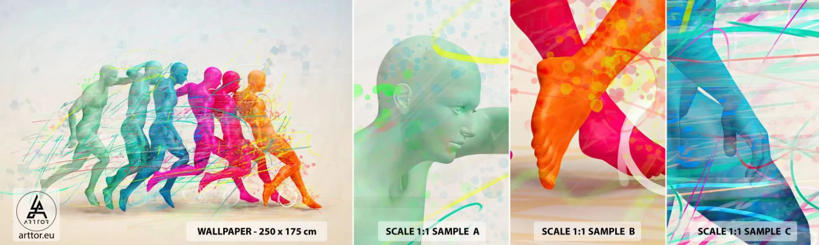 Fotobehang Monster Zelfklevend Deluxe Sticker - Harmonie van beweging - Abstractie, Man, Sport - 100x30 cm