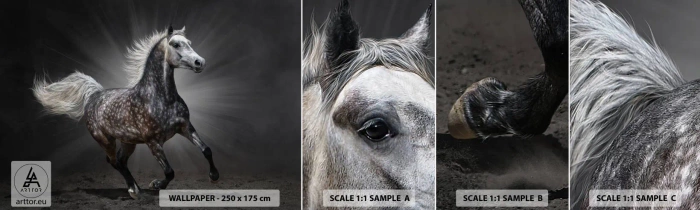 Fotobehang Monster Zelfklevend Deluxe Sticker - Grijs is mooi - Dieren, Arabisch paard, Natuur - 100x30 cm