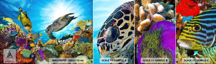 Fotobehang Monster Zelfklevend Deluxe Sticker - Koraalpromenade - koraalrif, Zee, Onderwaterwereld - 100x30 cm