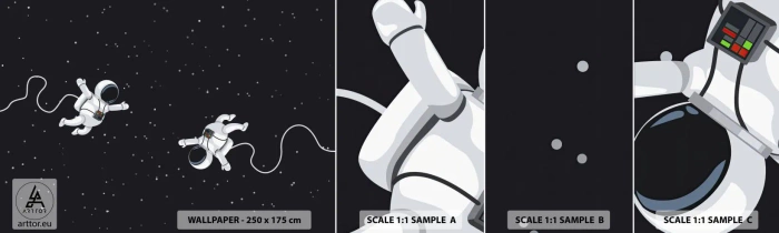 Fotobehang Monster Zelfklevend Deluxe Sticker - Kosmische dans - Abstractie, Astronaut, Kosmos - 100x30 cm