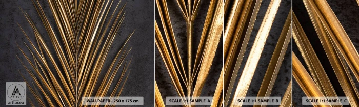Fotobehang Monster Zelfklevend Deluxe Sticker - Het goud van de tropen - Palmblad, Deel, Abstractie - 100x30 cm