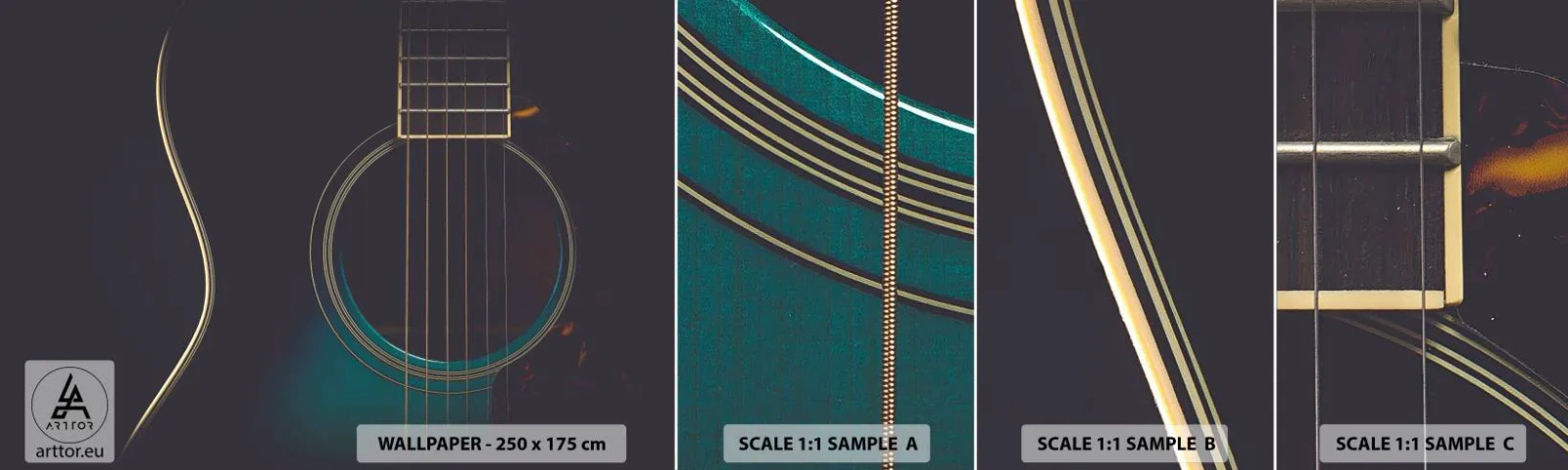 Fotobehang Monster Zelfklevend Deluxe Sticker - Nog even voordat het klinkt - Gitaar, Muziek, Snaren - 100x30 cm