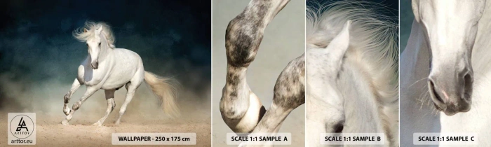 Fotobehang Monster Zelfklevend Deluxe Sticker - Vrijheid in zijn pure staat - Paard, Dier, Wit - 100x30 cm