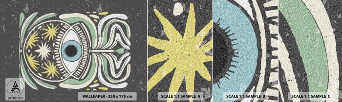 Fotobehang Monster Zelfklevend Deluxe Sticker - Tribale rituelen - Boho, Oog, Pastel - 100x30 cm