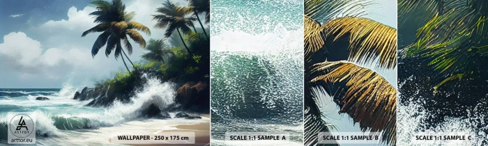 Fotobehang Monster Zelfklevend Deluxe Sticker - Op een tropische kust - Strand, Tropisch, Palm - 100x30 cm