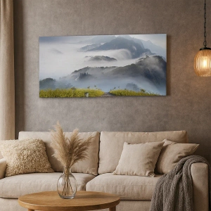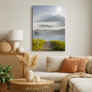 Het canvas wordt over het frame gespannen. De zijkanten en randen zijn bedrukt en zetten het beeld voort. De schilderij is klaar om aan de muur te hangen. Elk product heeft een hanger aan het frame en een montagekit (schroef + pin).