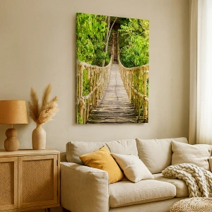 - Deze canvasprint toont een hangbrug in een tropisch bos, omgeven door weelderig groen. Een perfecte aanvulling op interieurs geïnspireerd door de natuur en het exotische, en brengt harmonie en rust.