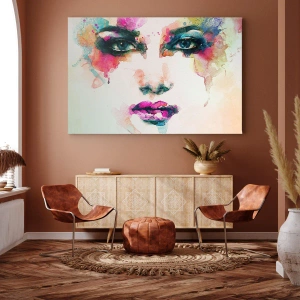 Schilderen op canvas - Een portret geschilderd met een regenboog - 100x40 cm