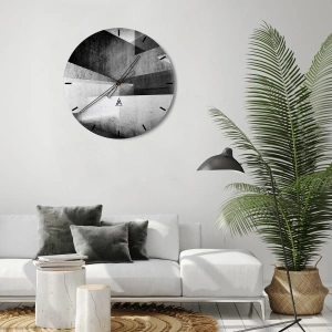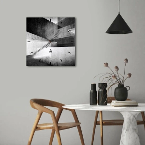 De klok is gemaakt van 4 mm dik gehard veiligheidsglas. De technologie van het maken van de klok voldoet aan de veiligheidsklasse 2B2 volgens de PN-EN 12600: 2004-norm, die weerstand tegen schokken garandeert. De klok op het glas is klaar om op te hangen - hij heeft een metalen hanger aan de achterkant van de klok en een schuimafstand die de even afstand tussen de klok en de muur regelt. De klok heeft een stil zwevend mechanisme dat wordt aangedreven door een batterij van 1,5 V - AA-batterij (batterij niet inbegrepen).