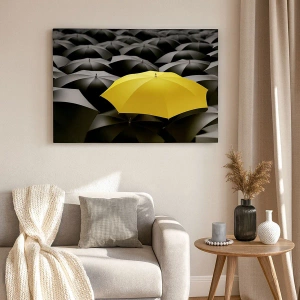 Het canvas wordt over het frame gespannen. De zijkanten en randen zijn bedrukt en zetten het beeld voort. De schilderij is klaar om aan de muur te hangen. Elk product heeft een hanger aan het frame en een montagekit (schroef + pin).