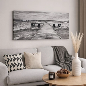 Het canvas wordt over het frame gespannen. De zijkanten en randen zijn bedrukt en zetten het beeld voort. De schilderij is klaar om aan de muur te hangen. Elk product heeft een hanger aan het frame en een montagekit (schroef + pin).