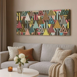 Het canvas wordt over het frame gespannen. De zijkanten en randen zijn bedrukt en zetten het beeld voort. De schilderij is klaar om aan de muur te hangen. Elk product heeft een hanger aan het frame en een montagekit (schroef + pin).