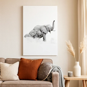 Het canvas wordt over het frame gespannen. De zijkanten en randen zijn bedrukt en zetten het beeld voort. De schilderij is klaar om aan de muur te hangen. Elk product heeft een hanger aan het frame en een montagekit (schroef + pin).