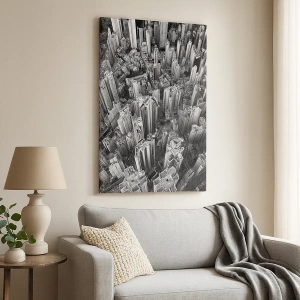 Het canvas wordt over het frame gespannen. De zijkanten en randen zijn bedrukt en zetten het beeld voort. De schilderij is klaar om aan de muur te hangen. Elk product heeft een hanger aan het frame en een montagekit (schroef + pin).