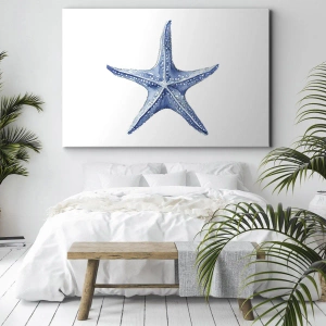Schilderen op canvas - Blauwe zeester op een witte achtergrond in een minimalistische stijl - 70x50cm - Ster van de zee - Moderne wanddecoratie voor woonkamer en slaapkamer ARTTOR