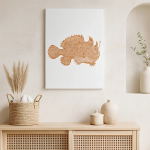 - Deze canvasprint van 70x50 cm toont een gedetailleerde koperkleurige vis op een witte achtergrond. Perfect voor moderne interieurs, het voegt subtiliteit en elegantie toe.