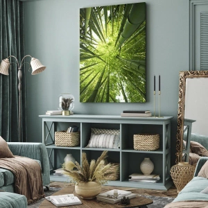 Het canvas schilderij "In een bamboebos" is een aanrader voor liefhebbers van natuur en harmonie. Het toont majestueuze bamboestruiken van onderaf, wat een buitengewone compositie vol groen en licht creëert. Dit unieke kunstwerk brengt een sfeer van rust en ontspanning in het interieur.