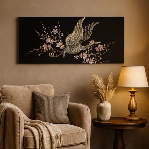 Schilderen op canvas - Exotische geborduurde vogel - 70x70 cm