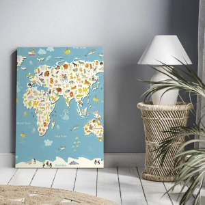 Deze canvasprint is een aanrader voor iedereen die zijn interieur wil verrijken met kunstelementen geïnspireerd door onderwijs en natuur. "Kleurrijke wereldkaart met dierenillustraties" is een decoratie die vreugde, kennis en een unieke stijl in het interieur brengt.