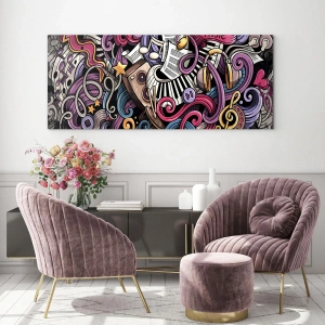 Wandkunst - Intricate Melody - Kleurrijke Muzikale Motieven met Noten en Instrumenten