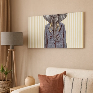 Het canvas wordt over het frame gespannen. De zijkanten en randen zijn bedrukt en zetten het beeld voort. De schilderij is klaar om aan de muur te hangen. Elk product heeft een hanger aan het frame en een montagekit (schroef + pin).
