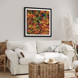 - De poster toont een schilderachtig bos in herfstkleuren, gezien vanuit vogelperspectief. De compositie boeit met zijn rijkdom aan kleuren en harmonie, en creëert een natuurlijke en warme sfeer in het interieur.