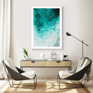 Poster in een witte lijst - Versmelten in wit en turkoois - 50x70 cm