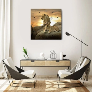 Wandklok - Klok - Twee leeuwen tegen de ondergaande zon - 30x30cm - Koninklijke majesteit - Moderne wanddecoratie voor woonkamer, keuken en slaapkamer ARTTOR