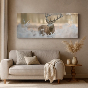 Het canvas wordt over het frame gespannen. De zijkanten en randen zijn bedrukt en zetten het beeld voort. De schilderij is klaar om aan de muur te hangen. Elk product heeft een hanger aan het frame en een montagekit (schroef + pin).