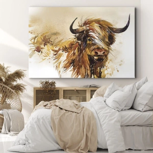 Het canvas wordt over het frame gespannen. De zijkanten en randen zijn bedrukt en zetten het beeld voort. De schilderij is klaar om aan de muur te hangen. Elk product heeft een hanger aan het frame en een montagekit (schroef + pin).