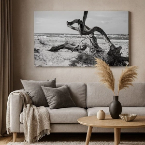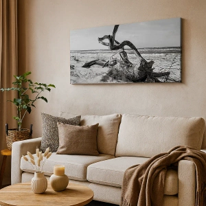 Het canvas wordt over het frame gespannen. De zijkanten en randen zijn bedrukt en zetten het beeld voort. De schilderij is klaar om aan de muur te hangen. Elk product heeft een hanger aan het frame en een montagekit (schroef + pin).
