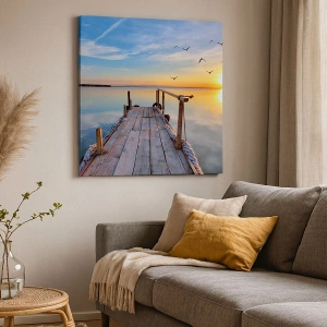 Het canvas wordt over het frame gespannen. De zijkanten en randen zijn bedrukt en zetten het beeld voort. De schilderij is klaar om aan de muur te hangen. Elk product heeft een hanger aan het frame en een montagekit (schroef + pin).