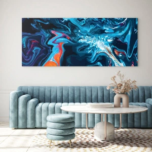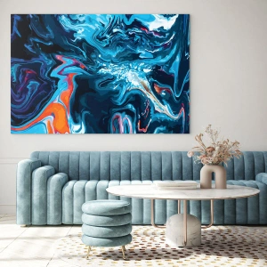 Investeer in een print die het middelpunt van uw interieur wordt. Het abstracte patroon in blauwtinten is een combinatie van energie, elegantie en moderniteit die elke liefhebber van mooie decoraties zal bekoren.