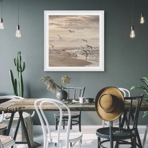 Poster in een witte lijst - Het geluid van de zee, het zingen van vogels - 30x40 cm