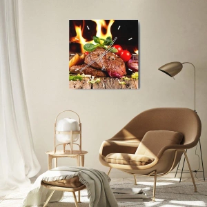 Wandklok - Klok - Biefstuk met groenten op het vuur - 30x30cm - Opgewekt door hitte - Moderne wanddecoratie voor woonkamer, keuken en slaapkamer ARTTOR