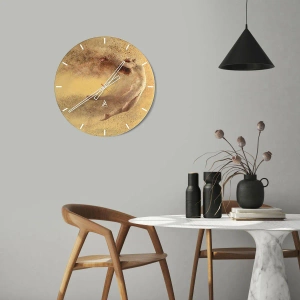 Het product is gemaakt van hoogwaardig glas, met een afmeting van 30x30 cm, wat duurzaamheid en een esthetische uitstraling garandeert. De ronde vorm en subtiele uurmarkeringen maken dat de klok perfect past in moderne interieurs. Het is de perfecte keuze voor wie van kunst en unieke decoratieve accessoires houdt.