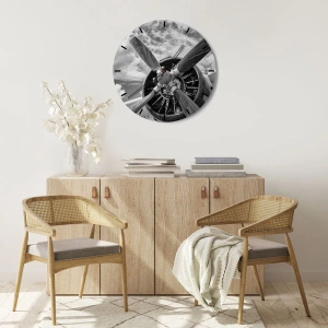 Vliegtuigpropellermotor is een unieke wandklok die opvalt door het unieke motief van een vliegtuigpropellermotor in zwart-wit. Het industriële karakter van het patroon benadrukt de soberheid en het technische ontwerp, waardoor de klok een perfecte aanvulling is op moderne, loft- en minimalistische interieurs.
