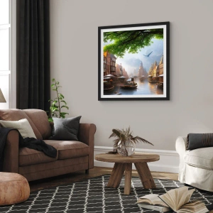 Poster in een zwarte lijst - Schilderachtig uitzicht op het kanaal met historische architectuur - 50x70cm - Hollands stadsbeeld - Moderne wanddecoratie voor woonkamer en slaapkamer ARTTOR