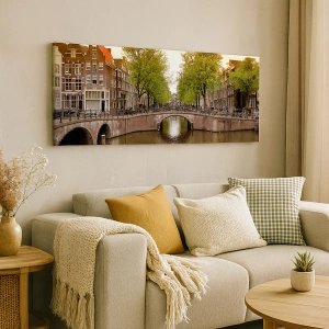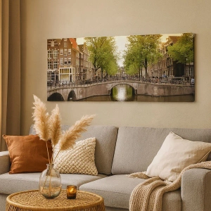 Het motief van de Amsterdamse grachten en huurkazernes is de perfecte keuze voor liefhebbers van stadsgezichten en reizen. Dit schilderij brengt een vleugje nostalgie in je interieur en inspireert je om de schoonheid van Europese steden te ontdekken.