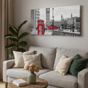 Het schilderij straalt elegantie en nostalgie uit en roept de sfeer op van Londen - een stad vol geschiedenis, cultuur en karakteristieke symbolen. Het contrast tussen het intense rood van de telefooncel en de ingetogen achtergrond benadrukt het unieke karakter van dit motief en maakt het tot het middelpunt van elke opstelling.