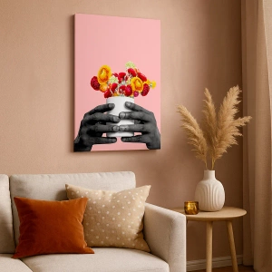 Het canvas wordt over het frame gespannen. De zijkanten en randen zijn bedrukt en zetten het beeld voort. De schilderij is klaar om aan de muur te hangen. Elk product heeft een hanger aan het frame en een montagekit (schroef + pin).