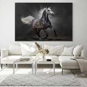 Wanddecoratie - Gray is Beautiful - Galopperend paard tegen een donkere achtergrond met lichteffect