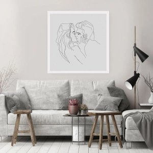• Graphics, Verliefd stel, Kus, Zwart en wit, mensen, kunst, Voor de eetkamer, Voor de hal, Voor de woonkamer, Voor de slaapkamer, Wit, zwart en wit, Verticaal