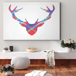 Canvas schilderij "Geometrische afbeelding van een hert op een lichte achtergrond" is een originele decoratie die bekoort door zijn eenvoud en moderne design. Het geometrische hertenmotief, gemaakt van kleurrijke lijnen, brengt een unieke harmonie en artistiek karakter in het interieur.