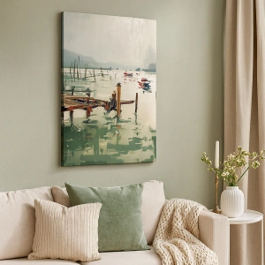 Het canvas wordt over het frame gespannen. De zijkanten en randen zijn bedrukt en zetten het beeld voort. De schilderij is klaar om aan de muur te hangen. Elk product heeft een hanger aan het frame en een montagekit (schroef + pin).