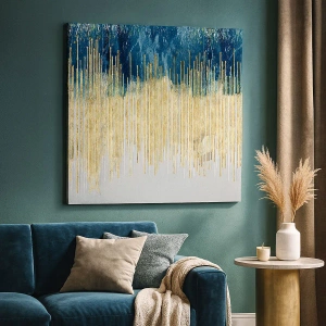 Het canvas wordt over het frame gespannen. De zijkanten en randen zijn bedrukt en zetten het beeld voort. De schilderij is klaar om aan de muur te hangen. Elk product heeft een hanger aan het frame en een montagekit (schroef + pin).