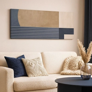 Schilderen op canvas - Geometrische figuren in tinten beige en marineblauw met lijnen - 70x50cm - Een compositie van eenvoud en rondheid - Moderne wanddecoratie voor woonkamer en slaapkamer ARTTOR